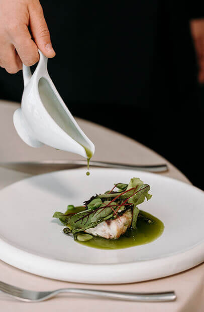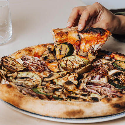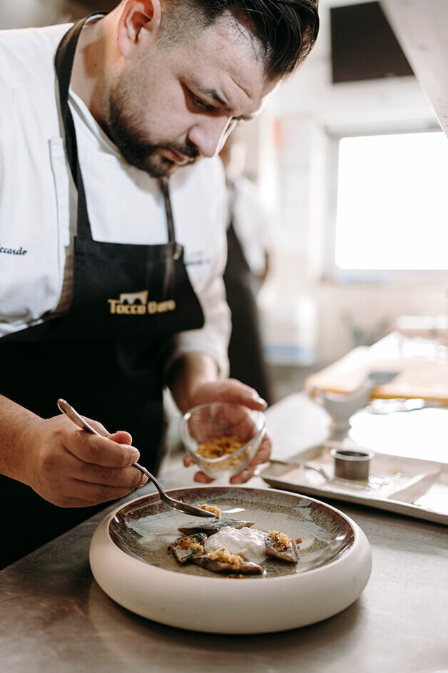 La Sicilia, con le sue materie prime, il suo fascino e i suoi racconti, è fonte d’ispirazione per una cucina autentica e di ricerca, raffinata e mediterranea. Che si esprime, a pranzo e a cena, nei piatti di terra, di mare e vegetariani, sulle pizze a lenta lievitazione, nei dolci d’autore, nelle eleganti proposte di catering e banqueting.