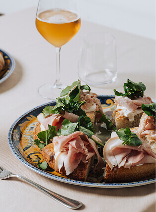 Una cantina varia e ricercata accompagna l’esperienza del gusto, con una selezione speciale di etichette del territorio e non solo.